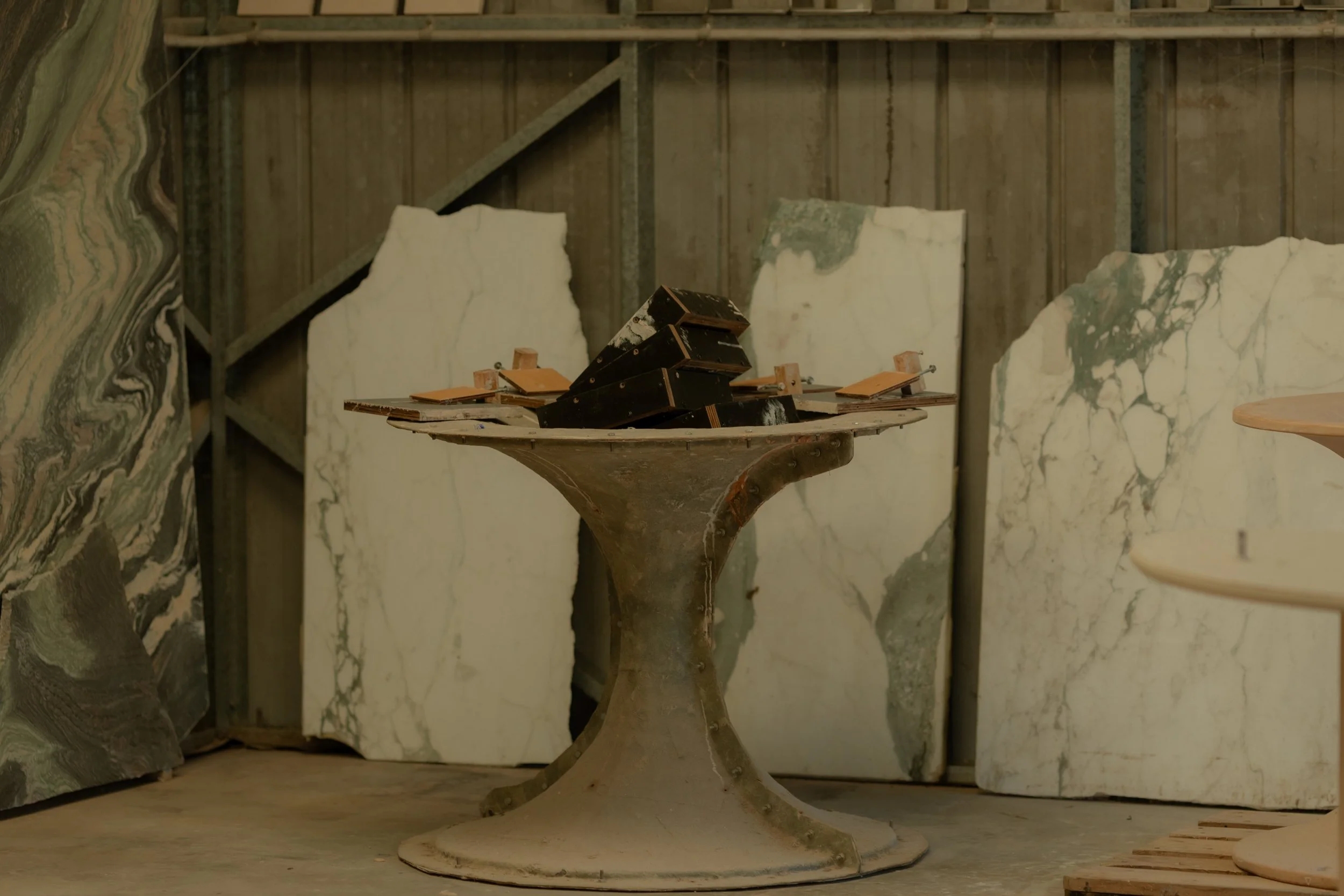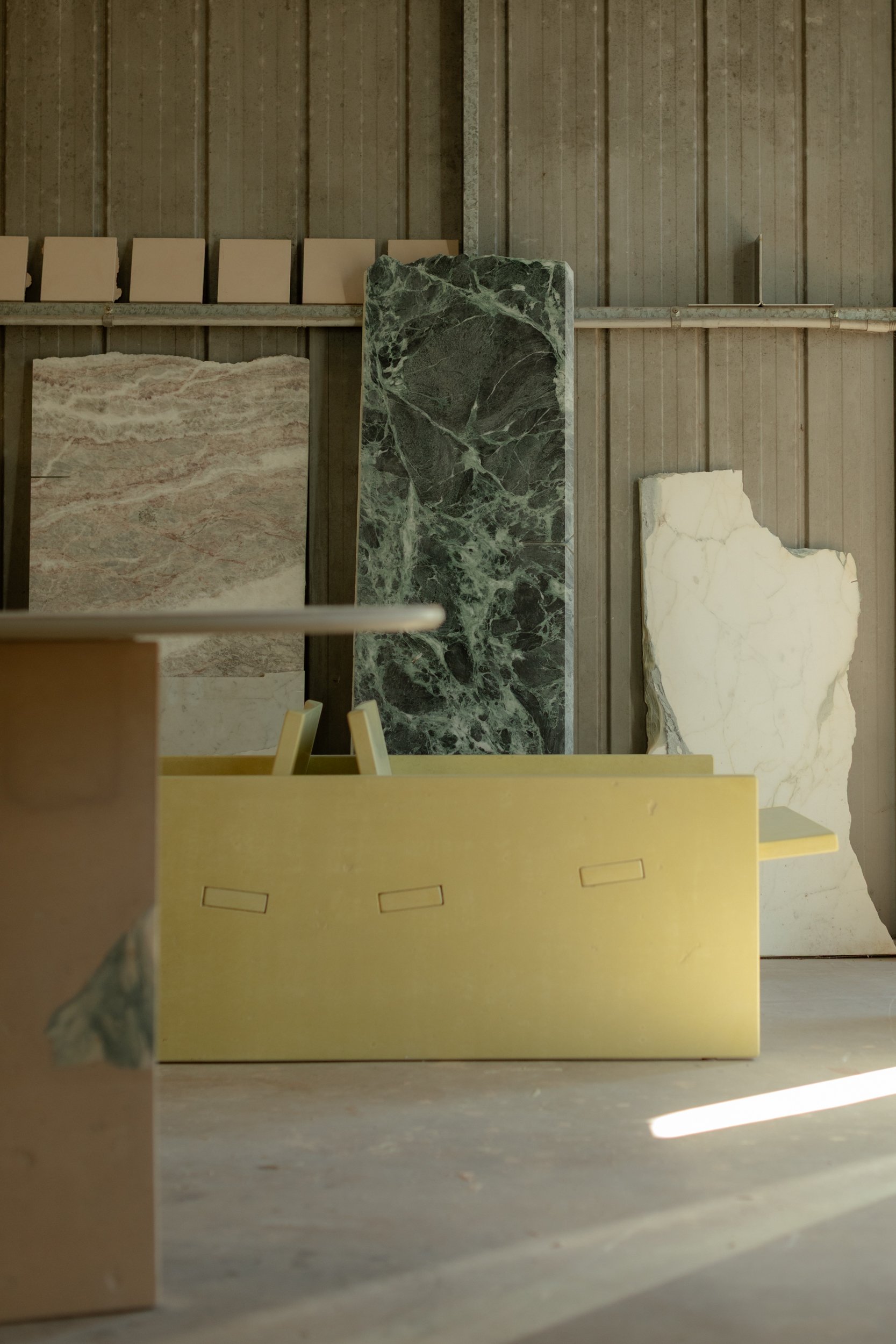 …A humble yet practical converted mechanics workshop on Bundjalung Country, Clunes NSW. Inside its walls Harley experiments with form and function with meticulous detail, taking raw materials including stone, cement, and fiberglass and turning them into one-off pieces of furniture. A true alchemy of elements, each piece requires a careful consideration of variables such as temperature and timing.