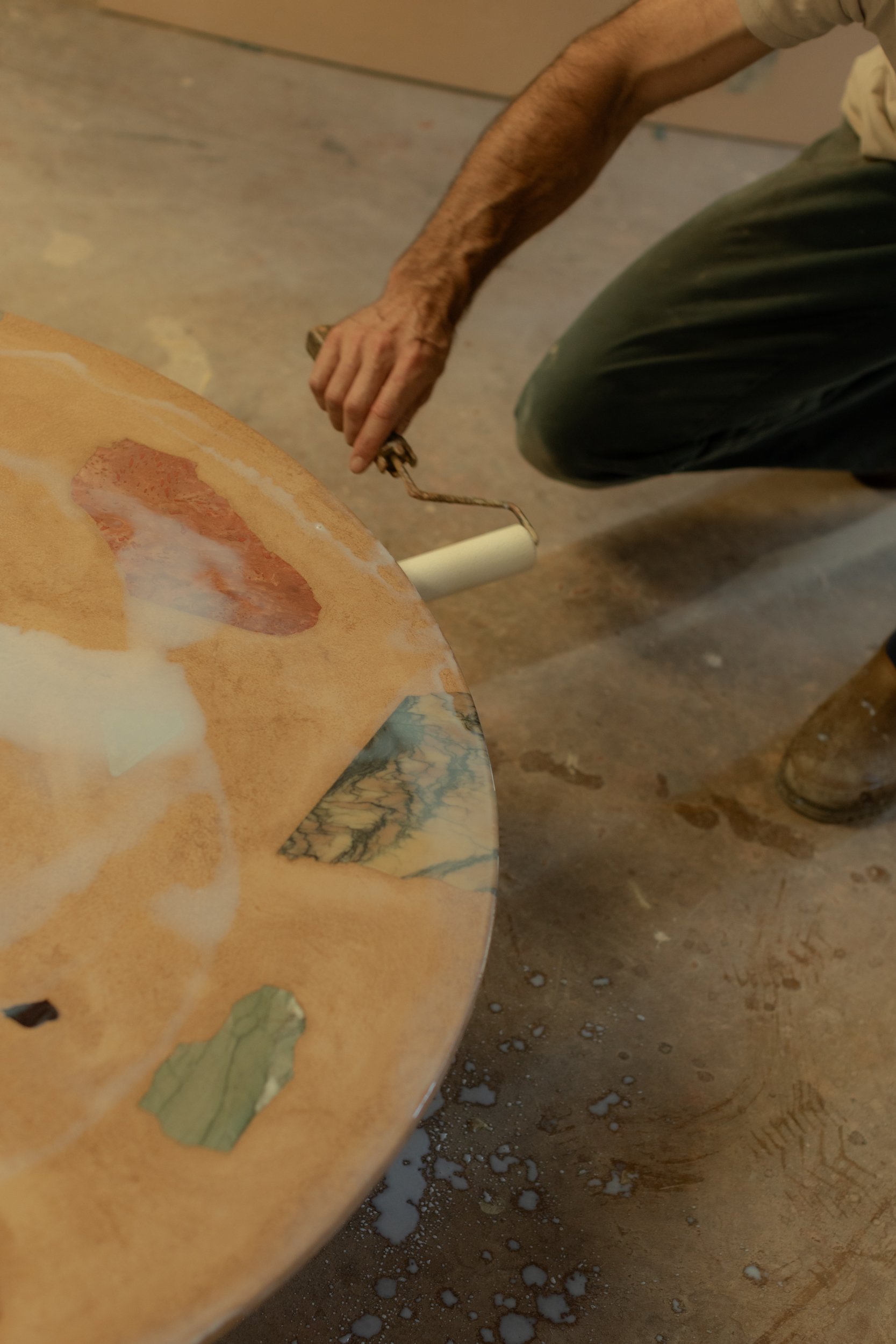 Typically a mosaic table has a substrate onto which the tiles are laid, or large stone fragments were laid Palladiana style on top of a stable floor, whereas I was trying to make the two materials work together as a single structure. There weren't a lot of precedents that I was aware of at the time. But I had a clear idea of what I wanted to make and I think that goes a long way when you hit hurdles along the way.