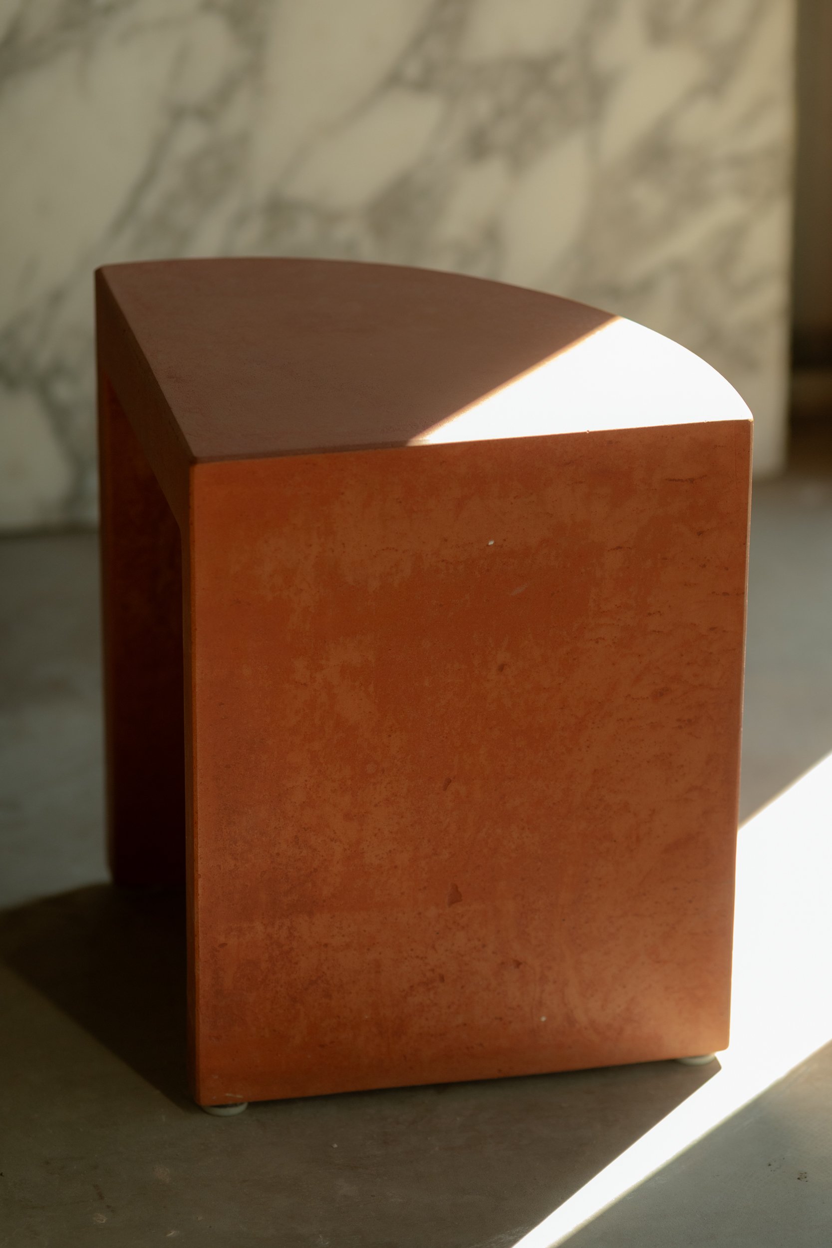 Harley’s background and formal study in architecture coupled with his experience in building has laid the groundwork for his current pursuit of furniture making. With subtle reference to the ancient craft of mosaic, Harley puts a contemporary spin on stonemasonry through his thoughtfully constructed designs. It is always fascinating to witness an artist build something from scratch, and Harley does just that throughout the entire process. From the initial hand-drawn sketches to mixing pigments, laying stone, and building formwork, the final output is a testament to Harley’s patience and craftsmanship.