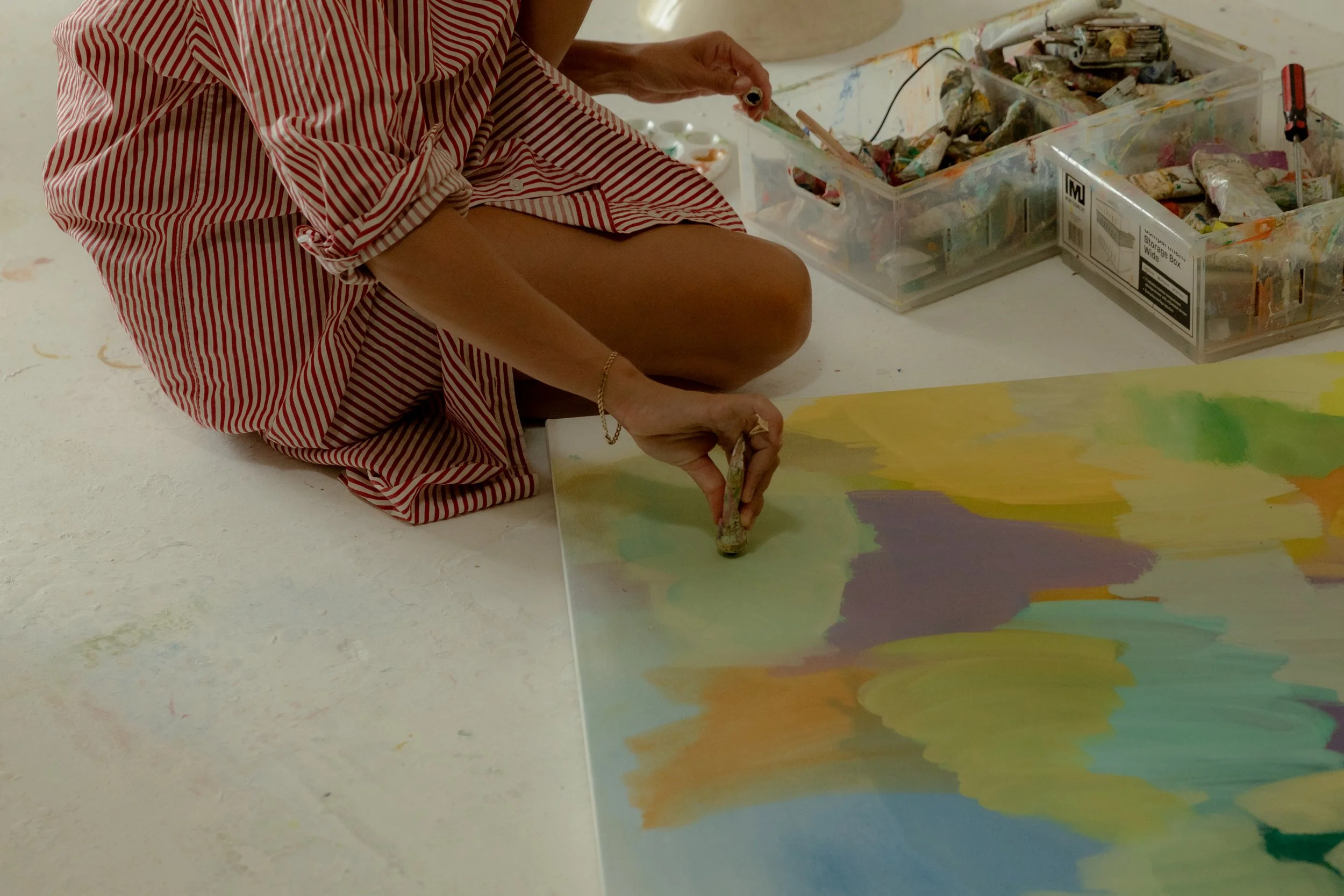 Whilst each piece often begins with a memory, they soon evolve into what Sara describes as “colour conversations”, with the act of painting itself transforming the initial inspiration into something else entirely. What remains feels reminiscent of the sensory curiosities in life.