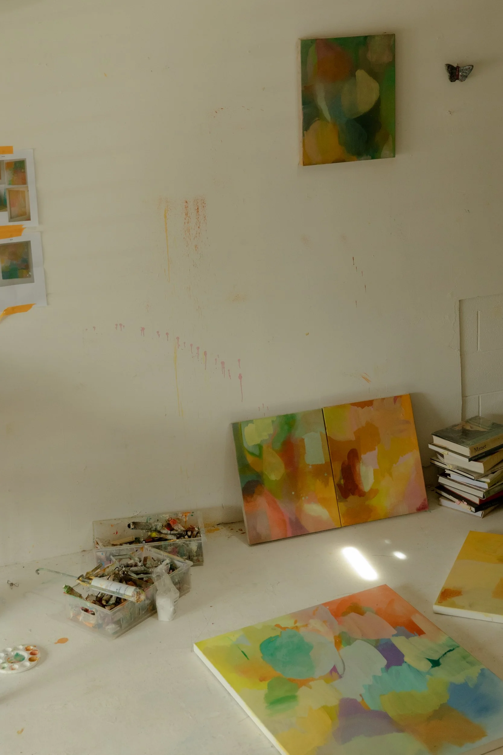 SD. My paintings are abstract colour explorations at their essence. They are very much about the act of painting itself, while they may begin from outside inspiration or memories they often end up material and process led. The materiality of the paint, the brush, the linen and then the colour conversations and internal compositions start to take over, fading away and transforming the initial ideas.
